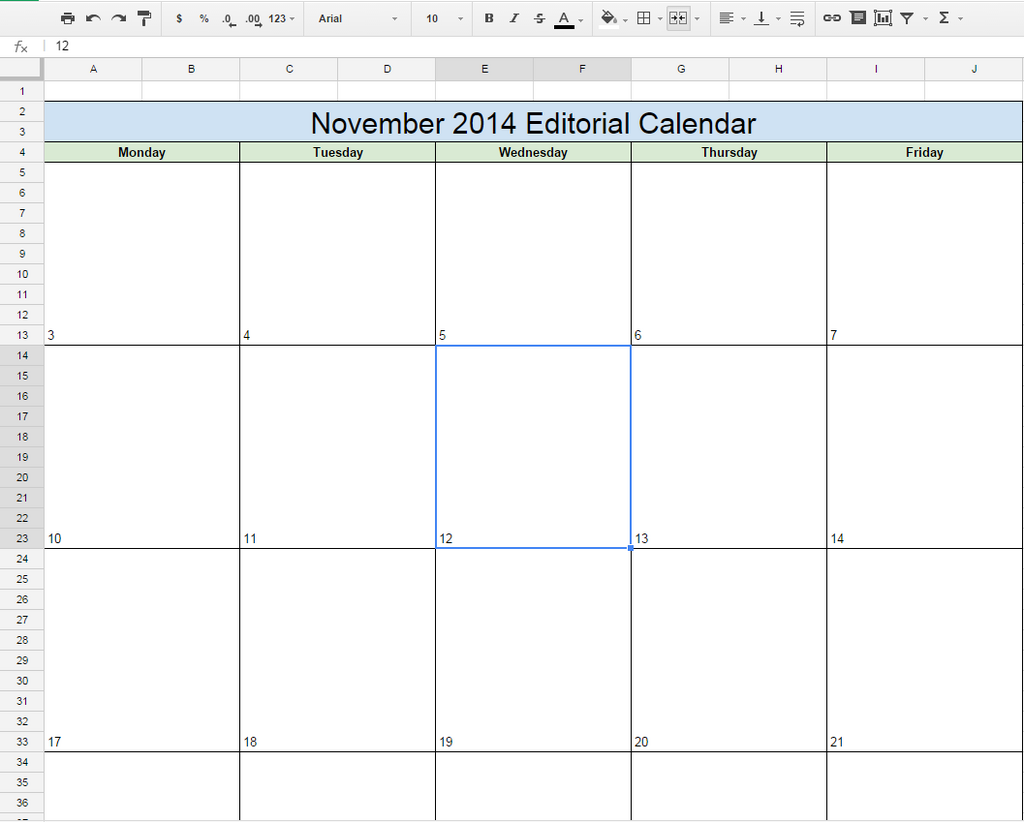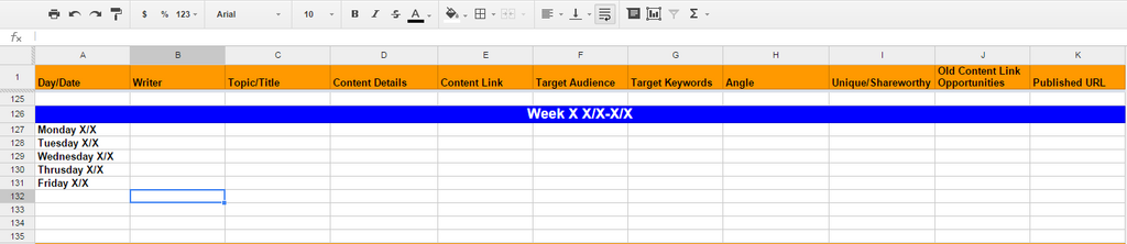 An organized and well maintained editorial calendar is absolutely essential to content planning. There are a number of helpful paid tools that make it easy and straightforward to set up an editorial calendar, but for a free option Google Docs is a viable choice.