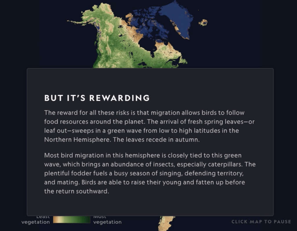 This beautiful map combines amazing interactive visualization with storytelling. As you scroll through the page, the story unfolds one paragraph at a time.