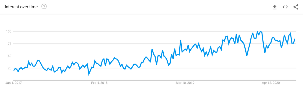 The calculator’s publication corresponded with the growing interest around sustainability in fashion. Notice the increase of Google Searches for the term “sustainable fashion” over the past 3 years.