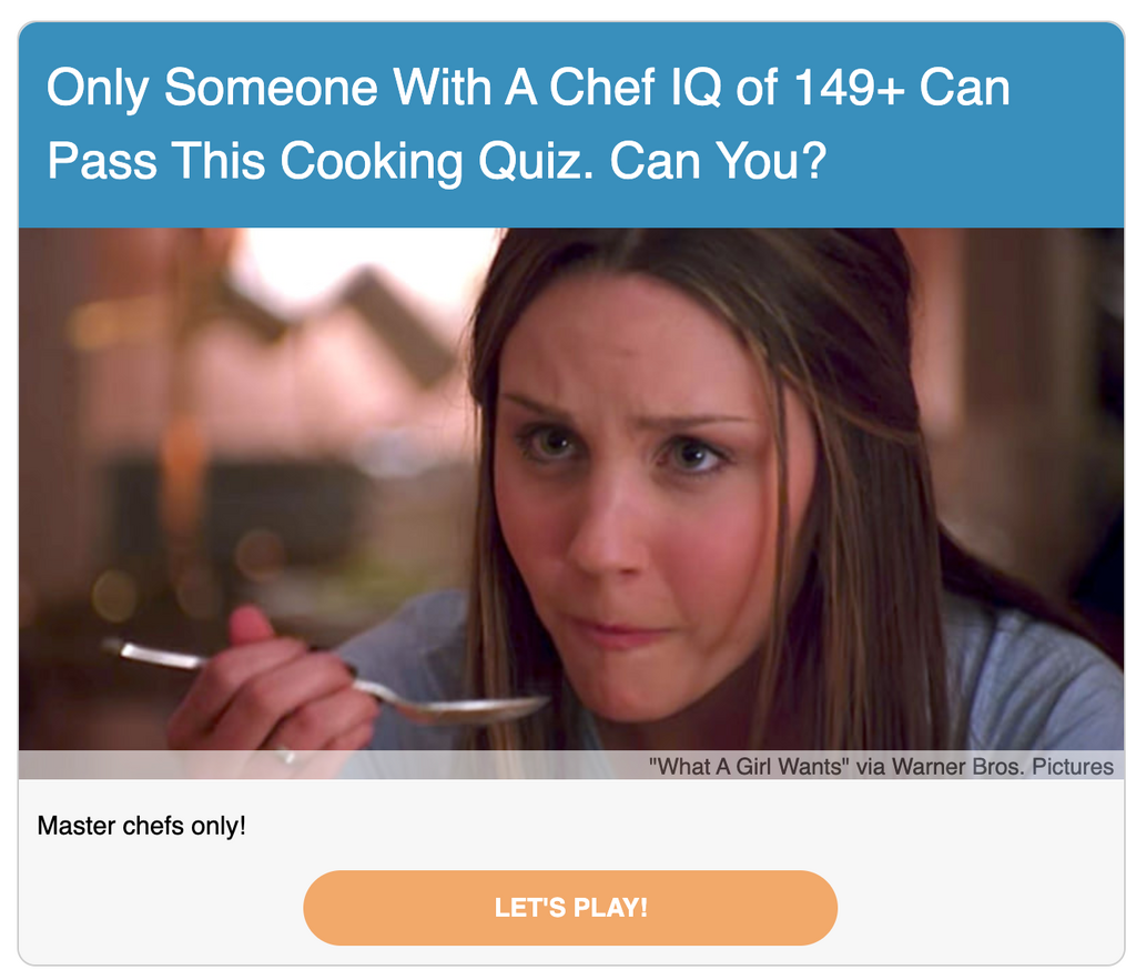 This is a great example of an interactive food post. Publishers will often call a quiz the most difficult ever, then make it easy to “pass” or succeed – it all plays into our vanity! This is very much the case in the quiz above. Food lovers would especially want to share their high score on this difficult food terminology quiz.