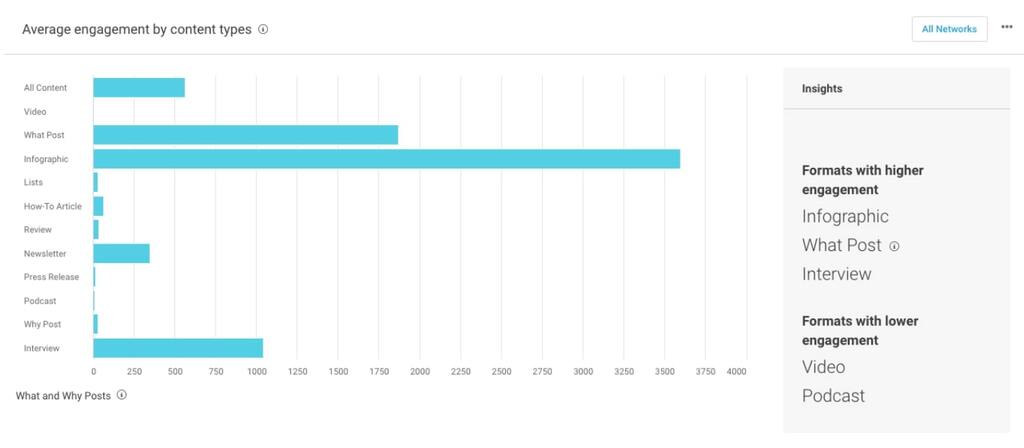 BuzzSumo’s Content Analyzer Report tab can also help you spot the topics ripe for interactivity. To use this tool, search for your focus keyword and check the "Average engagement by content types" chart in the tab.