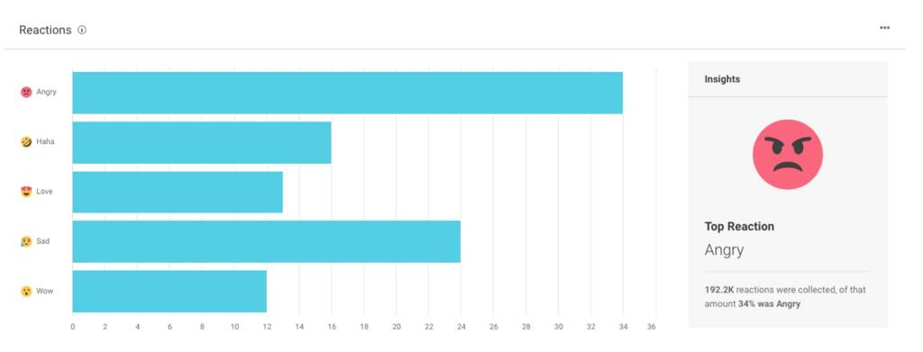 Using BuzzSumo, we can see that 192K people have reacted to the topic of unpaid labor – that’s 15% of all Facebook engagements. Of that, 34% were angry, and 24% saddened.