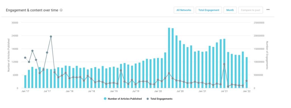 Use BuzzSumo’s Content analysis reports to see the top domains across networks for any topic.