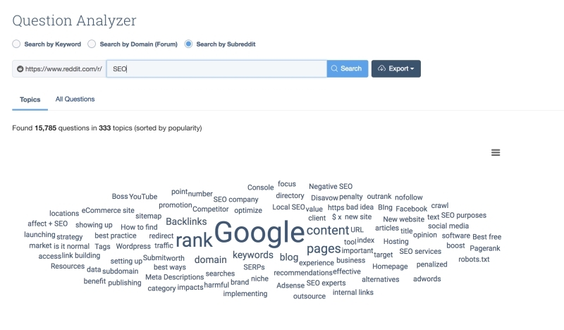 BuzzSumo’s Question Analyzer provides an easy way to identify questions asked on Reddit, or in individual subreddits.