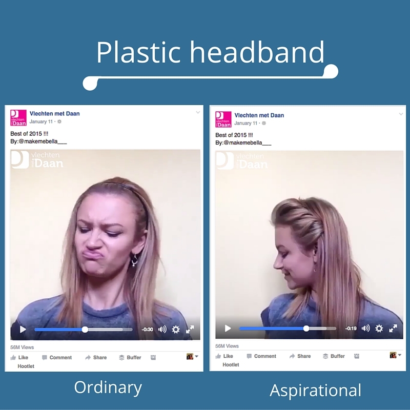 Vlechten.met.daan also exemplifies this aspirational quality. Their hairstyle videos cause viewers to think about new and different ways to wear their hair. What if this ponytail could also become a set of bangs (no scissors required!). Or what if this plain plastic headband could easily create a more elegant look?
