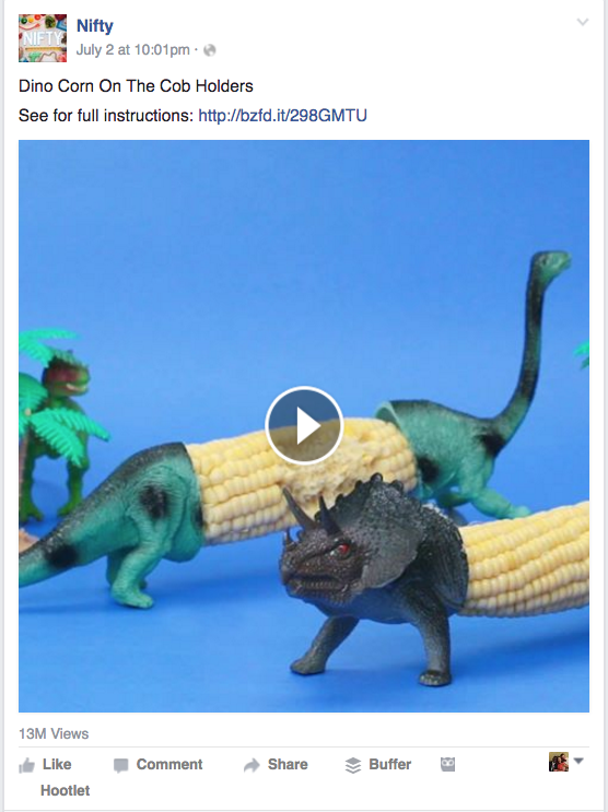 If you are a Facebook user like me, you may not be surprised to find Tasty videos listed here. I wasn’t, because I’ve seen numerous shares of Tasty videos in my personal feed. What was new for me was the knowledge that Tasty videos aren’t just popular among my friends–many of whom like to cook. It’s Facebook wide!