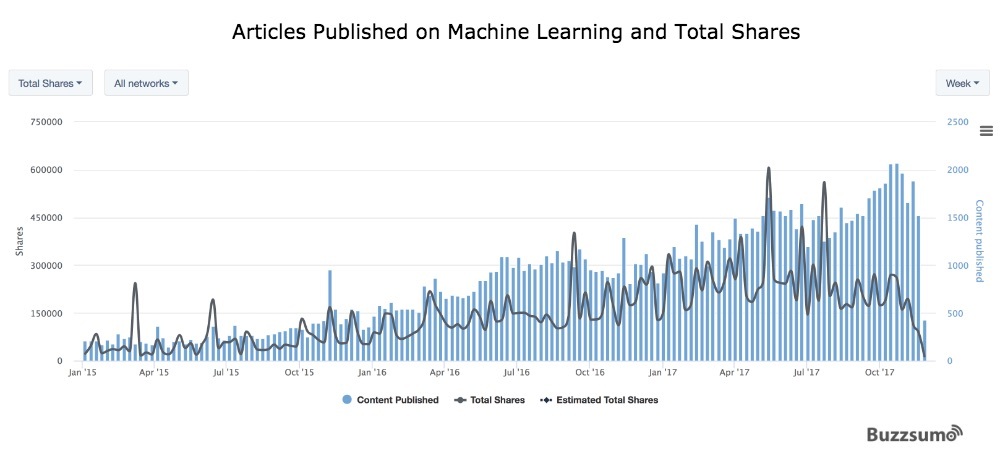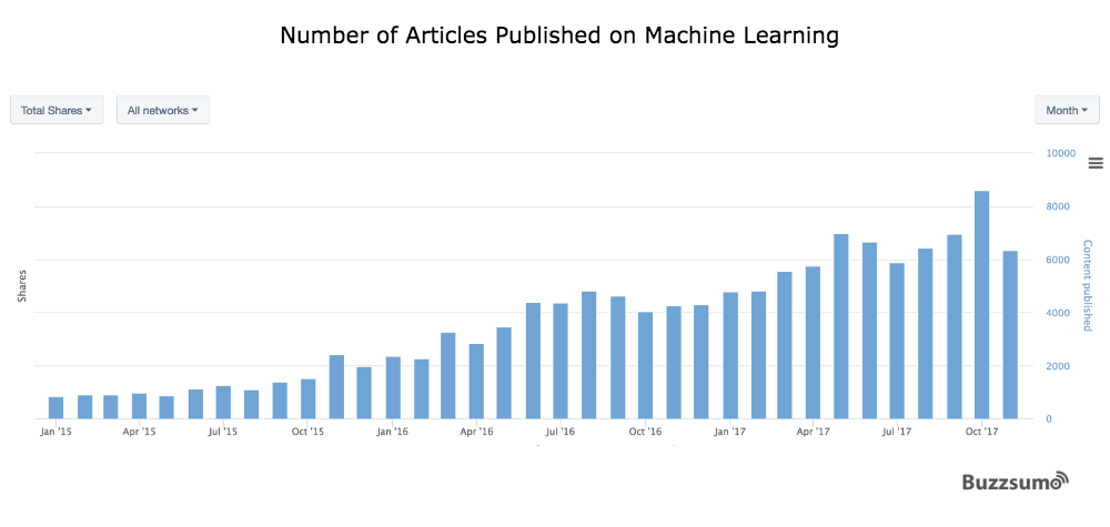 In the example below I used the topic ‘Machine learning’. The chart shows that the volume of content being published about machine learning has increased significantly since 2015.