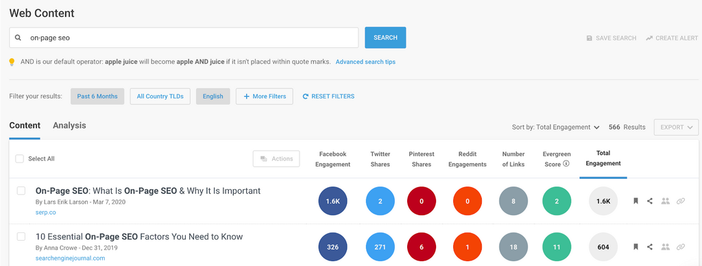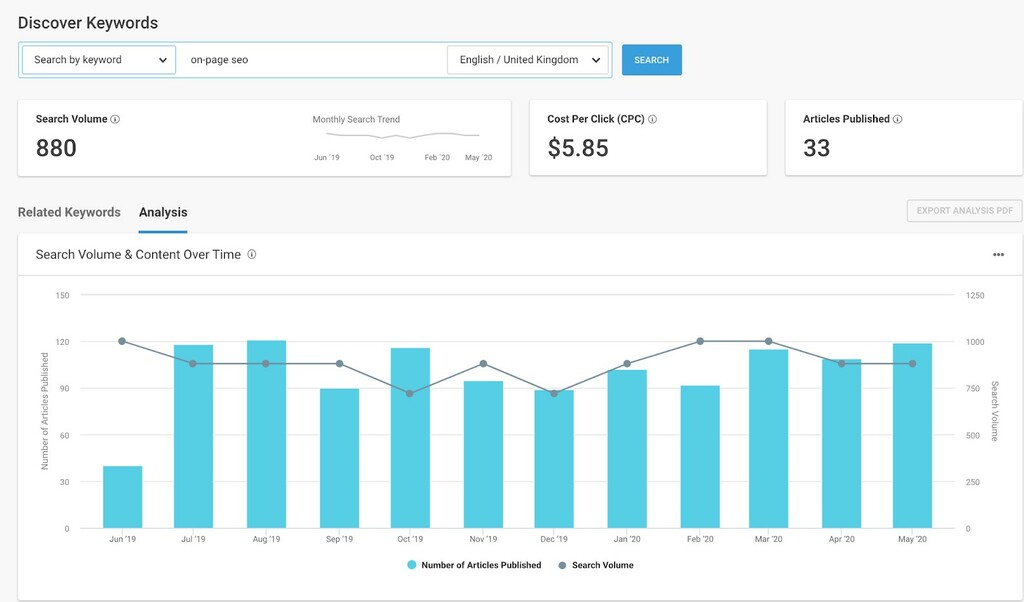 Content Analyzer – enables you to identify and research top-performing content for the given key phrase.