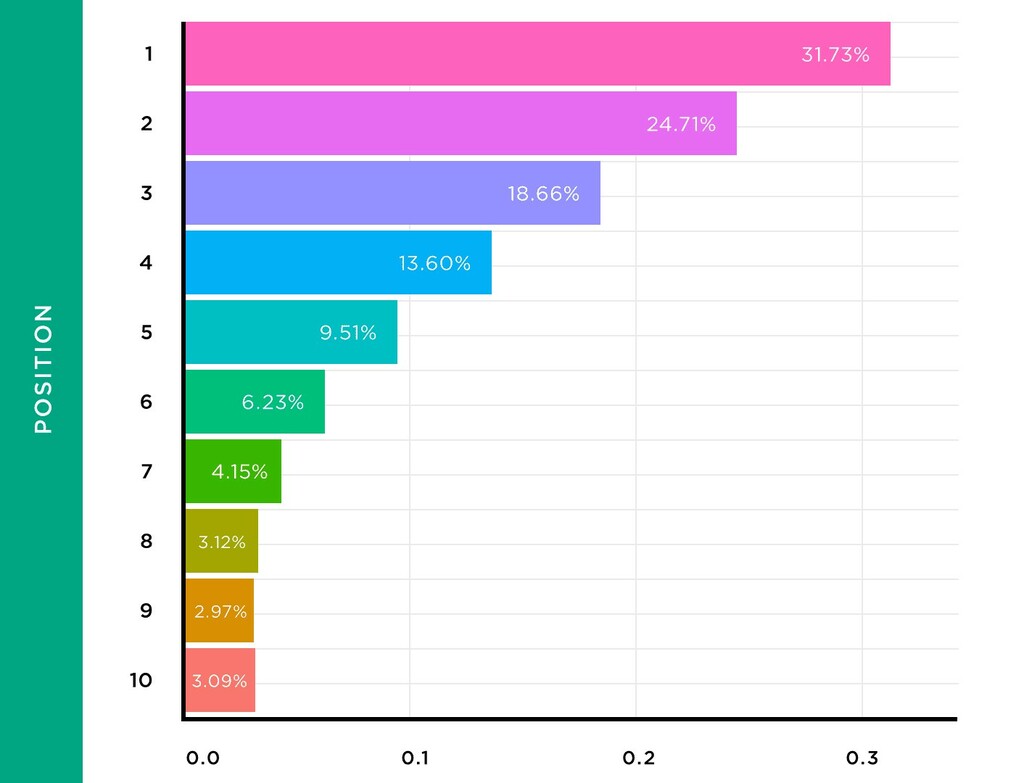 SEO is the name given to the set of practices that are designed to help websites become more visible on search engines like Google. On average, as the graph below shows, Google’s first position gets a CTR of 31.73%.