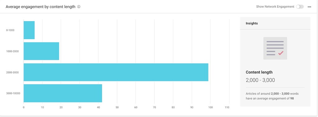 The analysis tab shows additional metrics like engagement by network and engagement by content length.