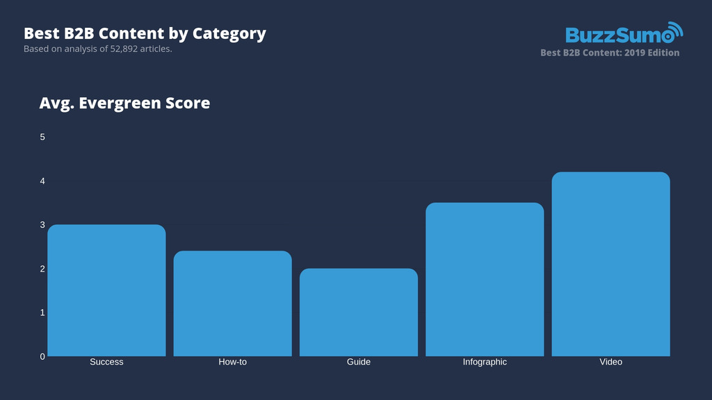 Video and Infographic content were more evergreen — with higher backlinks and social shares over time than all the other content types.