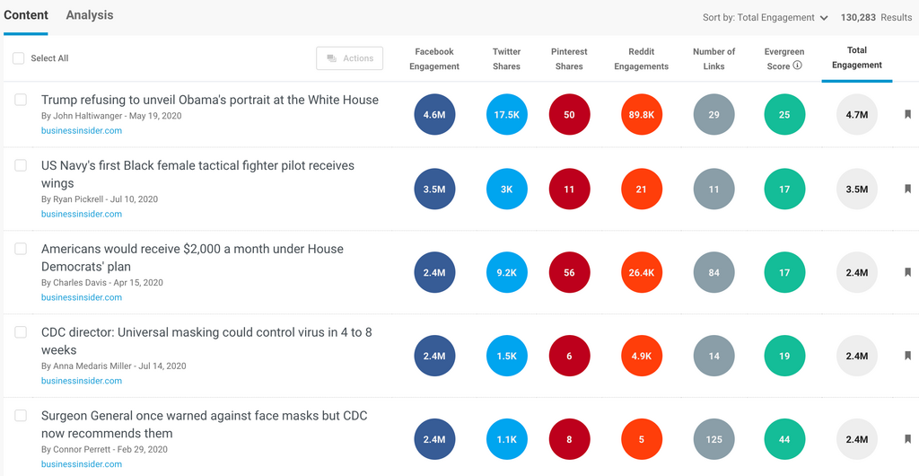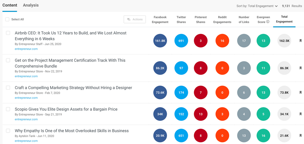 Performing this type of research and data analysis for your industry is as easy as signing up for a free trial of BuzzSumo. With our Content Analysis and keyword analysis tools, you can search for the top performing content around keywords or from specific domains.
