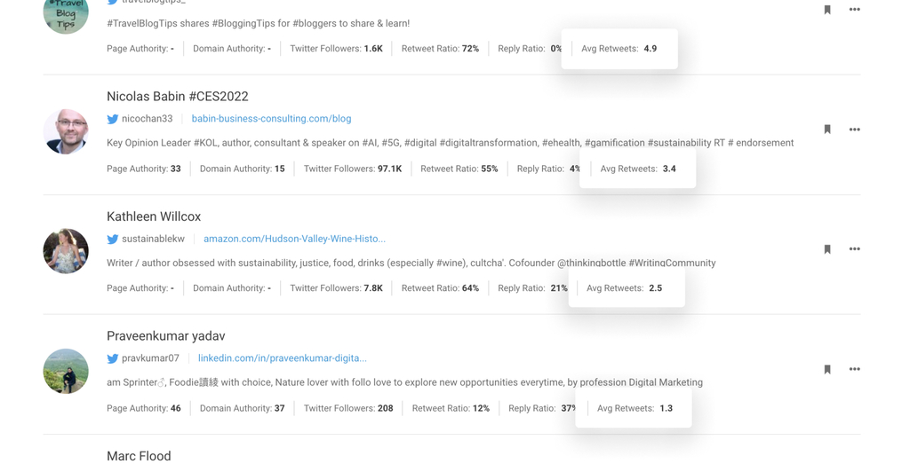 This list is automatically organized by one of the most important influencer metrics – average retweets.