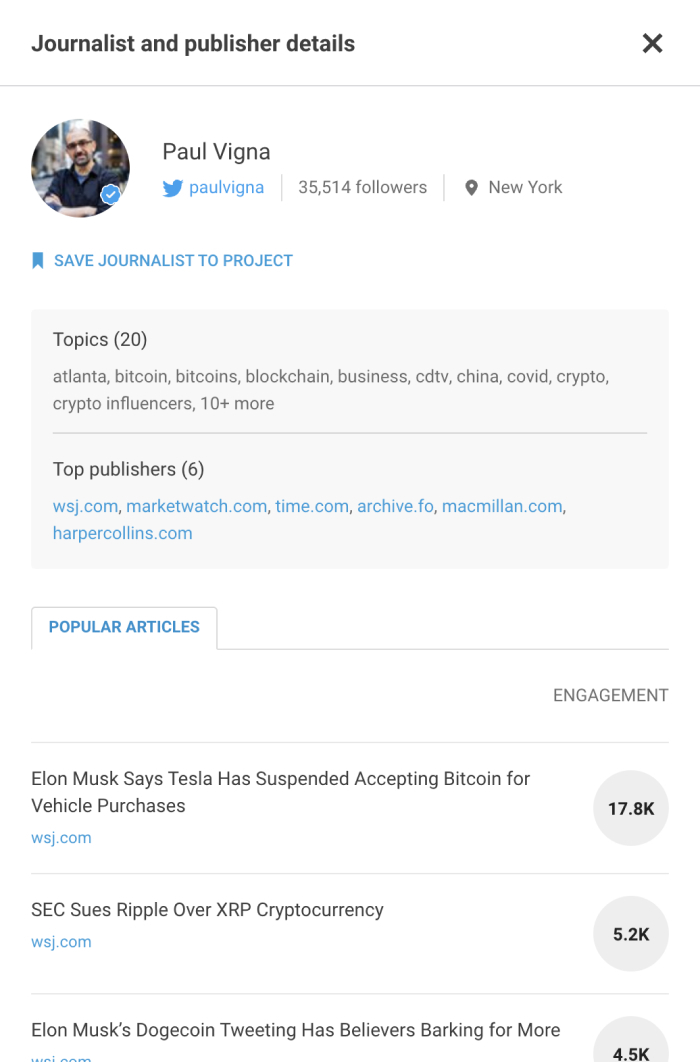 All you have to do is click on the journalist icon to view their full profile.
