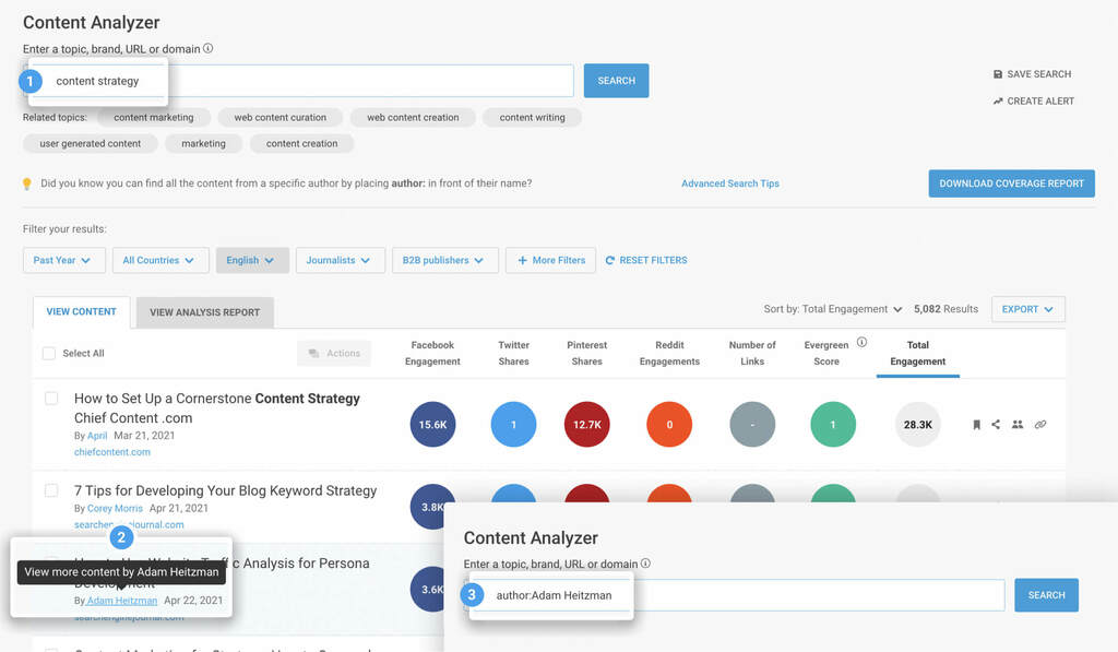 All you have to do is head to the Content Analyzer, and search a topic relevant to your brand or campaign, to get a list of the most shared articles.