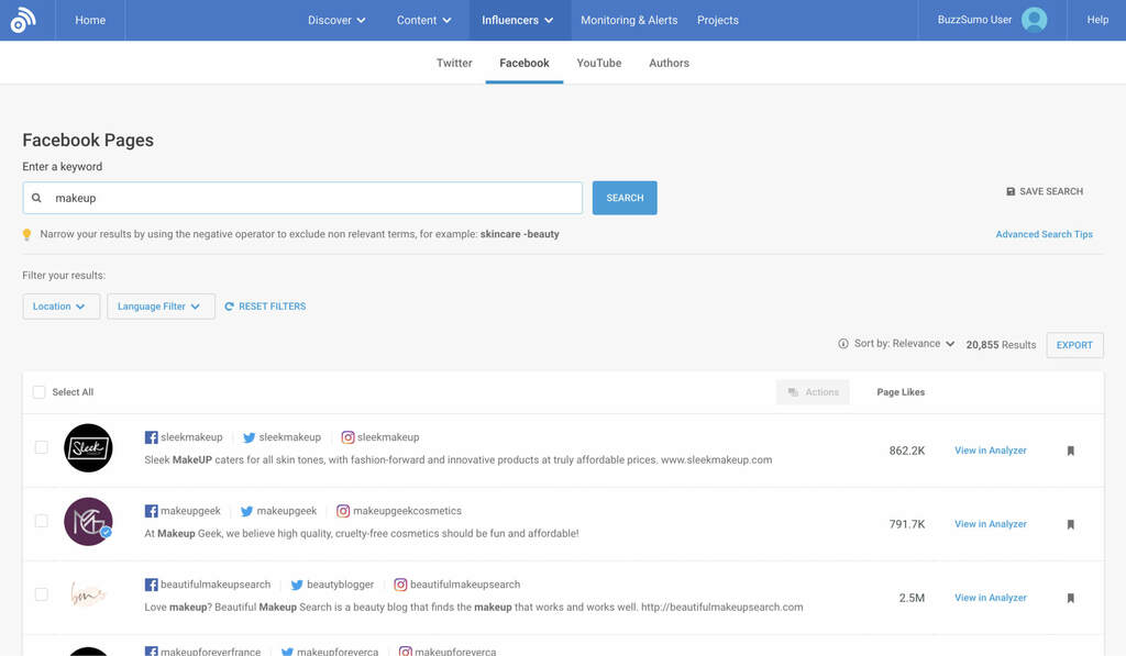 Once you know who you’re looking for, you’ll have a better idea of how and where to find them in BuzzSumo.