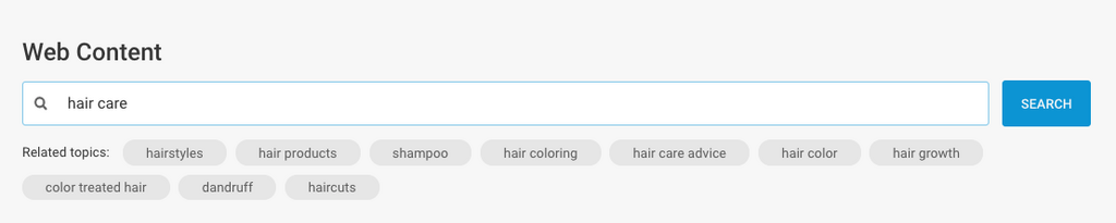 They didn't find a lot of content on the first search but, using the related topics lozenges, they were able to spot five additional phrases.