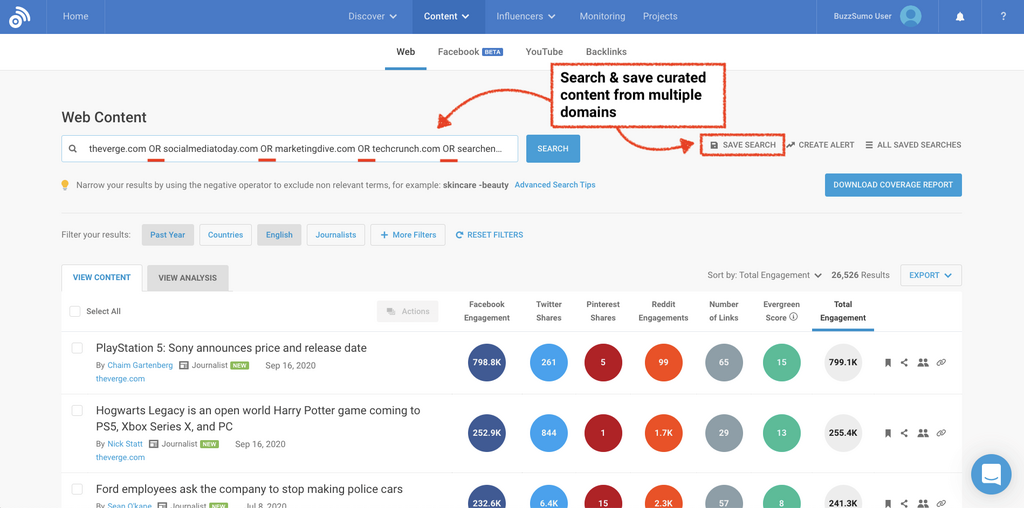 But here’s a shorthand to BuzzSumo’s Advanced Searches: