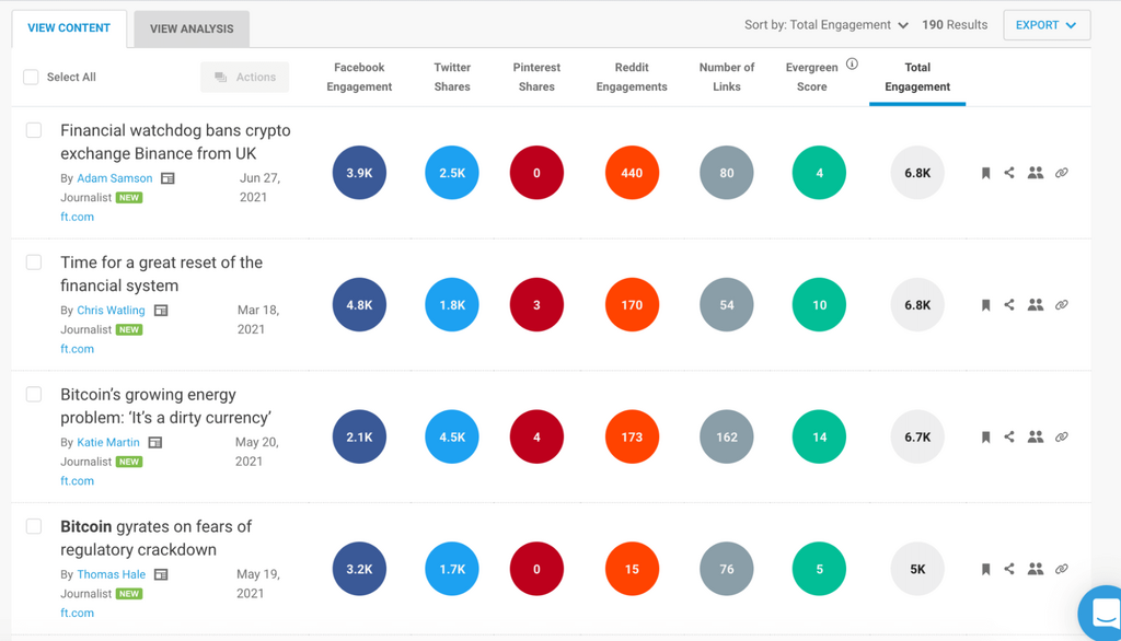 You can view this data alongside any of the 8bn+ articles we track in the BuzzSumo database.