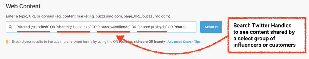 You can even do one of our lesser known searches: The “shared by:” search, to see the top content shared by a group of Twitter users (ie. content marketing influencers or your customers).