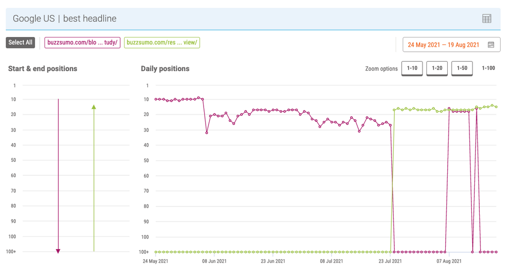 We now rank at the top of page one for the expensive keyword "BuzzSumo Alternative", and have successfully changed the mind of users that would otherwise have looked elsewhere.
