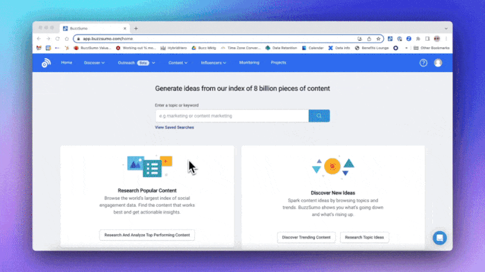Enter any topic, term or url to search to see BuzzSumo in action. It’s free!