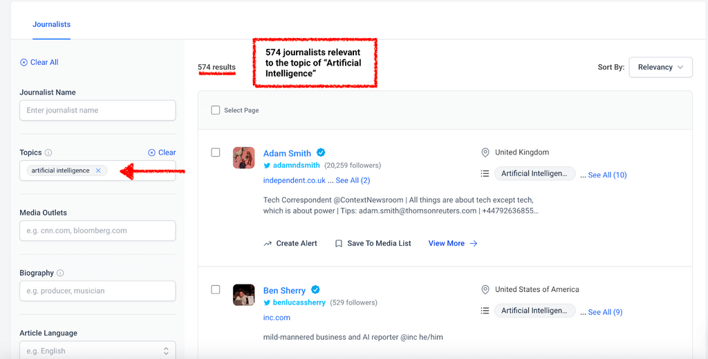 Or maybe you have a client in a specific industry niche, and you want to find journalists that cover that vertical?
