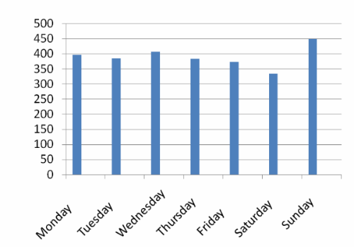 These results do not provide evidence that more sharing is achieved by publishing marketing or SEO content on weekdays. There is some evidence that Saturday is a poor day for publishing content in terms of shares but Sunday appears to perform well. Other surveys have also found Sundays to be a good day, for example see this article on Entrepreneur.com. We should be cautious though as there could be other factors at work. For example, content may be published on a Sunday but shared on a Monday, also content published on Sunday afternoon and evening on the West Coast of the US is effectively published on a Monday morning in Australia and Asia.