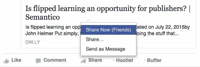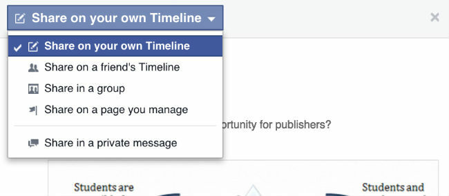 The first argument about commitment is certainly true, as whilst a ‘like’ is frictionless, to share can require more effort, although there is now a ‘one click’ option in Facebook to simply share with Friends without commenting, see image below.