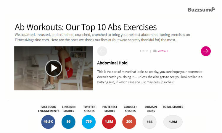 Is that enough Donald Trump? Switching gears: Pinterest must be the healthiest social network as many of the most shared posts were about healthy food and exercises. This post also received over 380 links as well as over 2m shares. It has the classic elements: list post, promise of personal improvement in headline, and health-related posts do well in general as we saw with the Alzheimer post above.