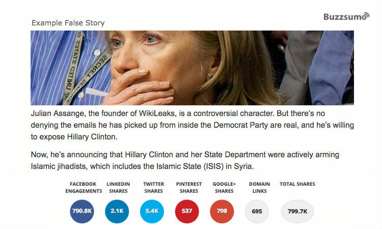 Finally, we thought we should reference the discussion of widely shared false news stories during the Presidential election. BuzzFeed did an analysis of false news stories which included this particular post on Hillary Clinton actively selling arms to ISIS.