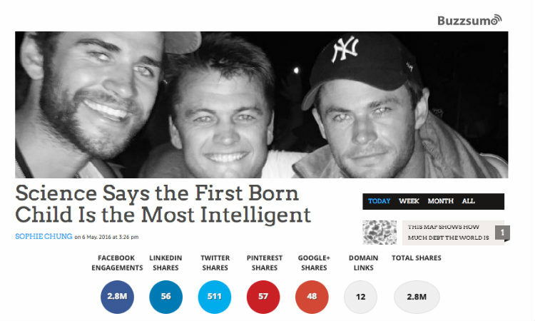 Every family with children has a first born child, so this research will clearly appeal to a very large audience. The M2 site was reporting on a study by Leipzig University, that found first-born children get an IQ boost from having to teach their younger siblings and receiving undivided attention. Data was not available on how many shares came from first born children…