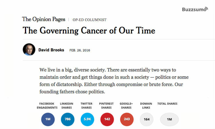 The most shared post on the New York Times this year was this political viewpoint. Strong opinions can generate both links and shares as we see here: