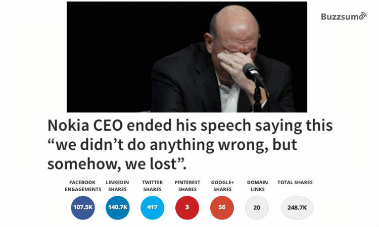This next article was a business story about Nokia. Most people are aware of how Nokia failed to keep pace with the smartphone market and went from a thriving business to a failing business.