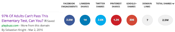 Again it is interesting to note that the quiz received very few links. Viral quizzes can gain a lot of shares but rarely do they attract links. But if you want to create a buzz, quizzes are one way to do it. Want to learn more? Check out our guide on how to create engaging and interactive content.