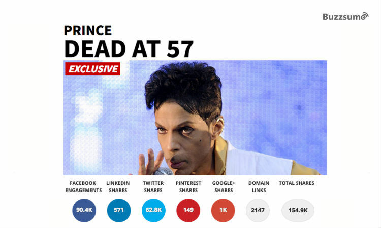 This article breaking the news Prince had died also got over 60,000 shares on Twitter.
