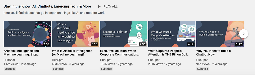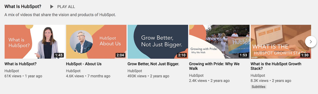 These channels try to balance strengthening the relationship with their existing audience and meeting their needs, while seeking to attract a new audience with wider content and grow the subscriber base. This is not an easy task. Let’s have a look at some of the HubSpot playlists and how they manage this balancing act.