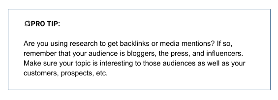 If you are in new space — or you are trying to create a category, consider creating a State of the Industry report. However, if you are in a crowded space, focus your research on a niche.