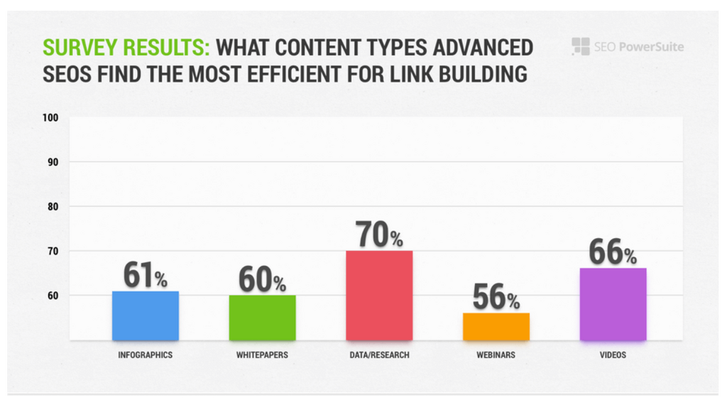 Data bears this out. SEO PowerSuite’s  Link Building in 2017 survey of SEO professionals discovered that research and data is the most efficient type of content at getting links.