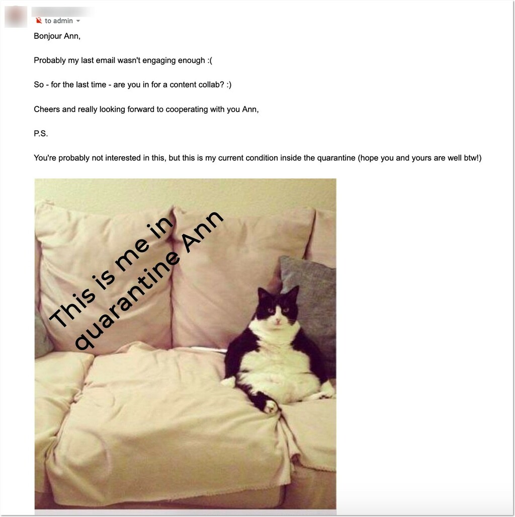 When approaching this group of contacts, try and identify if there’s anything new your own content is bringing to the table. Personally, I receive a lot of these emails and I never react to “My content is better / fresher / more in-depth” than the one you are linking to.