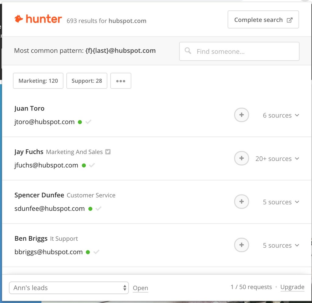 Hunter is a freemium Google Chrome extension helping you locate contact information on any website and it works very well. However, it is more of an additional method than my primary way of finding contact information but is still handy to have.