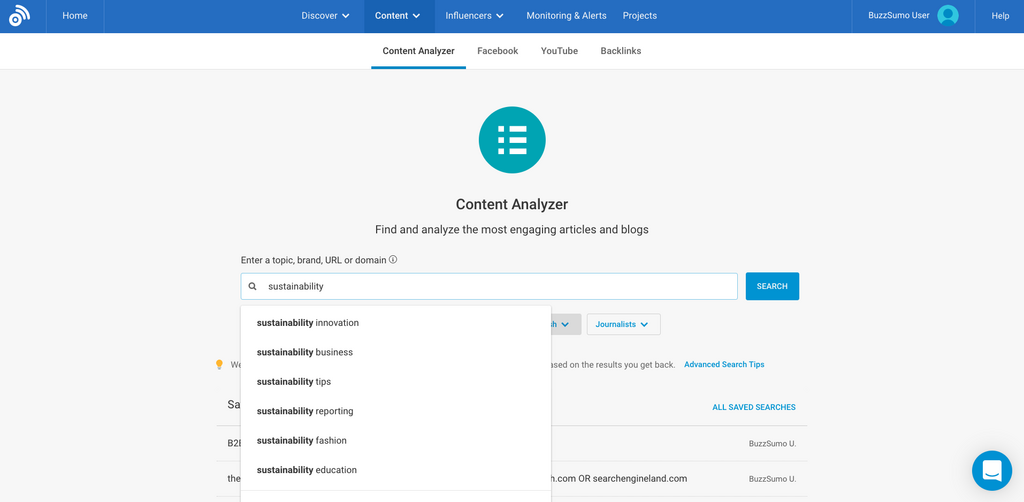 Notice how BuzzSumo gives suggestions based on the topic you enter.