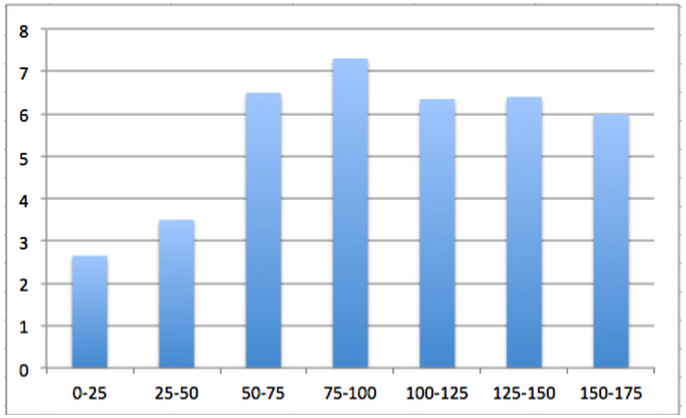 What they found was articles with an image once every 75-100 words got double the amount of shares of articles with fewer images, and a minimum of 30 more shares than articles with more:
