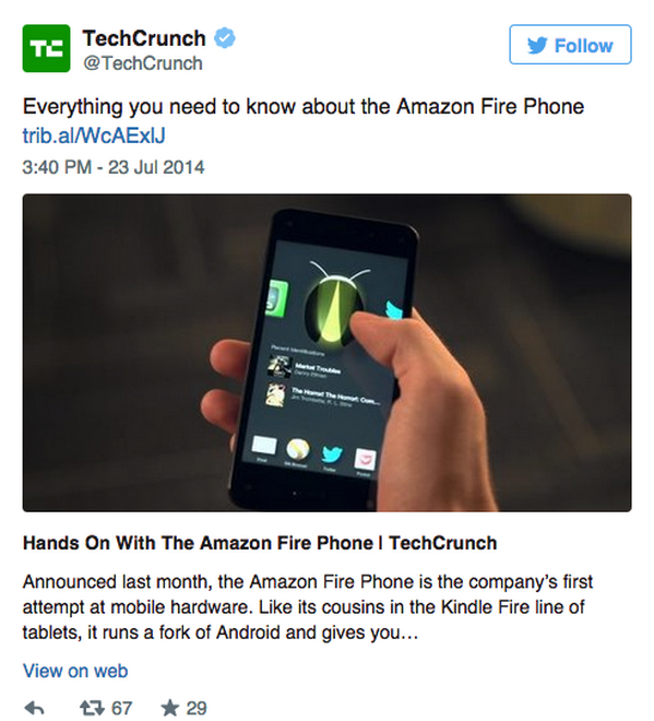 Now when you share the link, this large summary card will take the place of your original tweet. All you need now is a coffee to enjoy whilst you watch the engagements pour in.