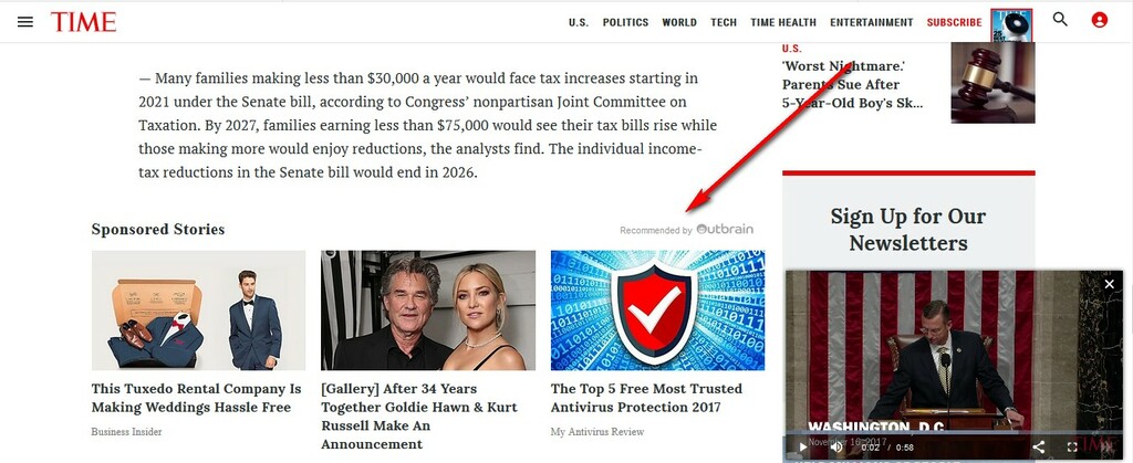 Outbrain is a native advertising platform that allows you to promote your content on a huge list of popular websites such as CNN, Time or ESPN. By using this channel, you have instant access to millions of users from all over the world. This is a great chance to expand your audience, boost your brand awareness or drive in quality traffic to your own business website or blog. Unlike traditional banner ads, these native ads are not intrusive, and they are published on the targeted websites as recommendations for the users. See the following screenshot for a clearer understanding of how Outbrain ads look like on Time.com.