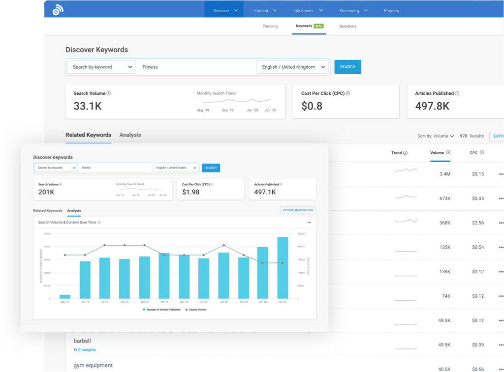 Enter any topic, term or url to search to see BuzzSumo in action. It’s free!