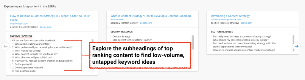 “Other SEOs and content writers are probably disregarding [these kinds of keywords] due to low search volume: advantage you.”