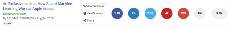 Another variation on this approach was this post from Back Channel on how Apple is using AI and machine learning. This post also achieved high shares for the site and a very high number of domain links.