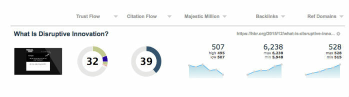 Harvard Business Review has a large audience and their posts typically get a lot of shares and inbound links, but typically articles receive less than a hundred links, often a lot less. This post on Disruptive Innovation achieved over 4,000 external links from almost 500 different domains.