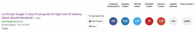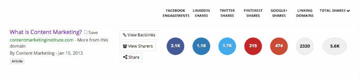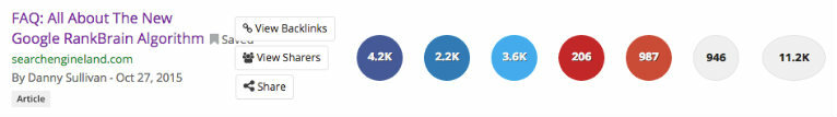 It is great to publish a viral post that gets well shared but shares are not enough. According to a recent study by Eric Enge at Stone Temple, links remain a very powerful ranking factor for Google. Content that achieves both high shares and links is truly magical and can significantly enhance your website and traffic. It is one of the reasons we have added Majestic‘s link data to our BuzzSumo app so you can now see the shares and links for any content article as shown below.